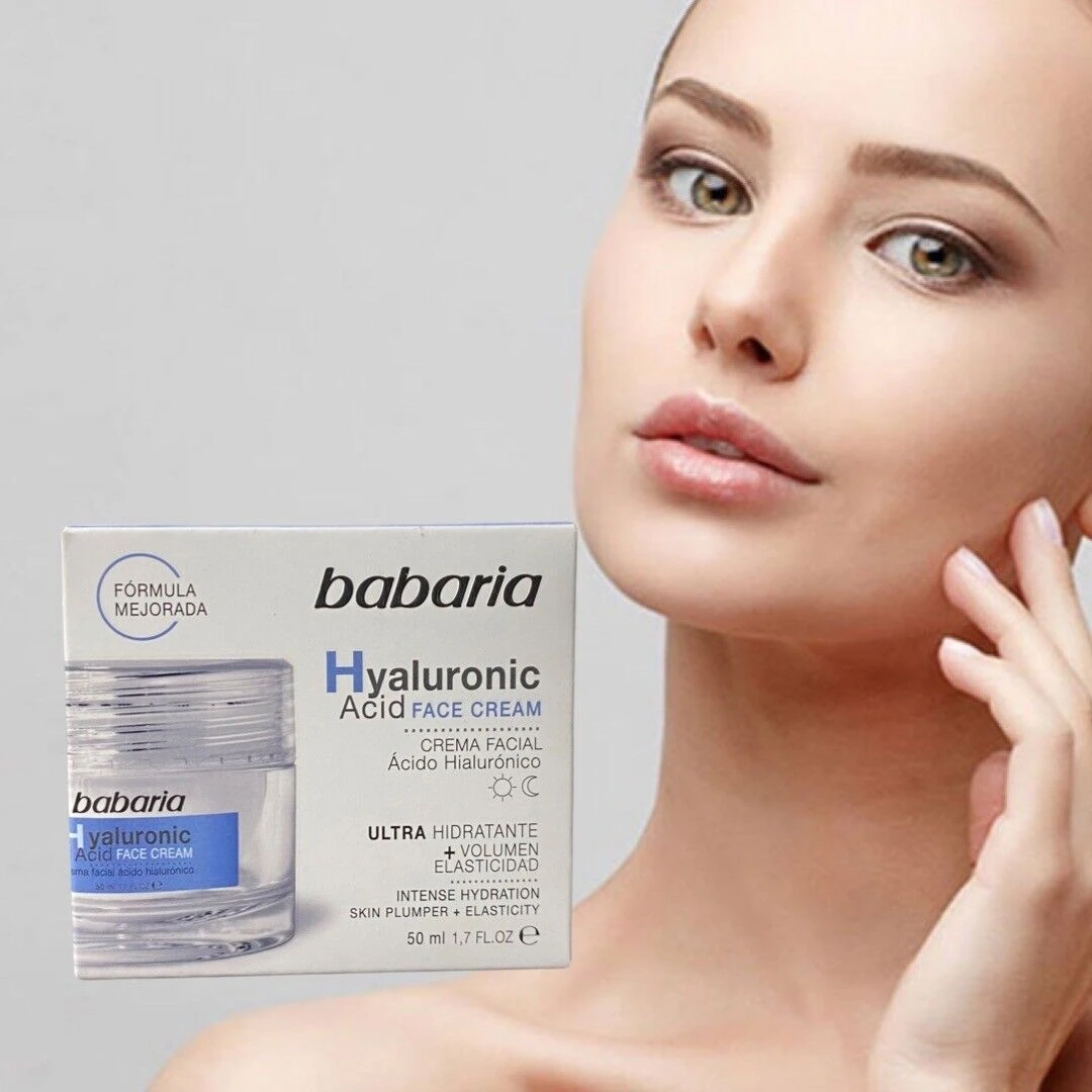 uitable for Any SkinThis cream is formulated to be suitable for all skin types, including dry, normal, oily, and sensitive skin. Experience advanced hydration and visible plumping with Babaria Hyaluronic Acid Face Cream. Enriched with hyaluronic acid, it restores moisture balance, smooths fine lines, and boosts skin elasticity. With its improved formula, it delivers long-lasting hydration and a youthful glow, making your skin feel fresh, firm, and radiant every day. Benefits