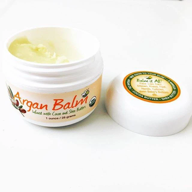 Suitable for All Skin TypesFormulated to work for all skin types. including dry, sensitive, mature, even eczema-prone skin. Ideal for occasional use on both kids and adults for nourishing, repairing moisture. Indulge your skin in rich, natural nourishment with this multi-purpose Argan Balm. Crafted with nutrient-packed argan oil and deeply hydrating cocoa and shea butters, this ultra-radiant balm melts into your skin to renew soft, supple, and revitalized areas of dryness. Compact and travel-friendly, it’s your on‑the‑go solution for glowing, protected skin from head to toe. BenefitsIntense hydration & barrier repair: Shea and cocoa butters lock in moisture and protect against dryness. Softens rough patches: Excellent for elbows, heels, cuticles, lips, and cracked skin. Multipurpose: Effective as a lip balm, hand moisturizer, spot treatment for any dry or sensitive area. Fast-absorbing & non-greasy: Melts into skin without leaving residue. Soothing & gentle: Calm, natural formula suited for sensitive skin (fragrance-free). Clean and natural: Often USDA organic with minimal, safe ingredients. Suitable Application AreasLips Face (e.g., around eyes or smile lines) Hands, cuticles, elbows, knees, heels Anywhere that feels dry, cracked, or in need of a moisture boost How to UseScoop a small amount (a pea-size is often enough). Warm between fingertips until softened. Apply to target area using a gentle, circular massage. Reapply as needed. works great overnight or before heading out. Keep the jar lid tight to preserve freshness. Warnings & PrecautionsFor external use only. Avoid contact with eyes. If contact occurs, rinse thoroughly with water. Patch test first, especially on sensitive or eczema‑prone skin; discontinue if irritation develops. Keep out of reach of children. Store in a cool, dry place. avoid direct sunlight and high heat. |