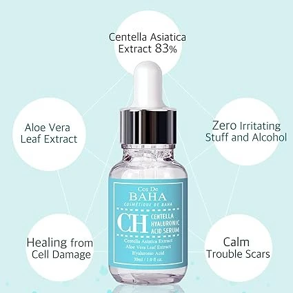 Soothe and hydrate your skin with Cos De BAHA Centella Hyaluronic Acid Serum. Formulated with Centella Asiatica extract, Aloe Vera leaf extract, and Hyaluronic Acid, this lightweight serum delivers deep moisture while calming sensitive and irritated skin. It works to strengthen the skin barrier, restore hydration, and improve overall skin texture, leaving your complexion refreshed, smooth, and healthy-looking. Key Benefits:
