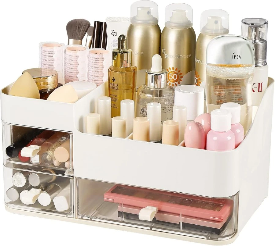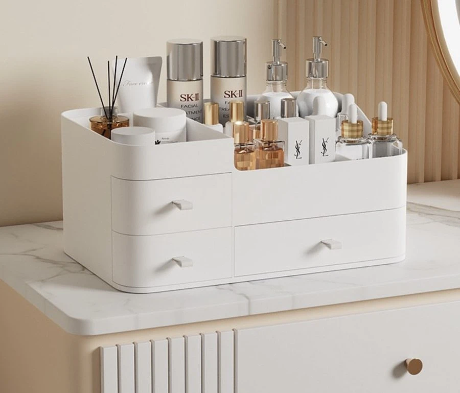 Keep your beauty space neat, minimal, and stylish with the Chew Cosmetic Storage Box. This sleek organizer is designed to fit seamlessly on any vanity or bathroom counter, offering a perfect combination of elegance and practicality. With multiple compartments and smooth-glide drawers, it’s the ultimate solution for storing your skincare, perfumes, and makeup essentials. Product Features: