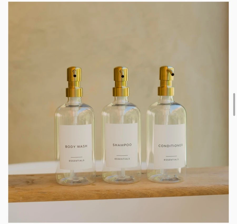 Bring elegance and organization to your bathroom with this minimalist set of clear refillable bottles. Perfectly labeled for Shampoo, Body Wash, and Conditioner, these bottles combine functionality with a clean, modern aesthetic. Ideal for home use, travel, salons, or Airbnb spaces. Upgrade your shower routine – because details matter. Product Features: