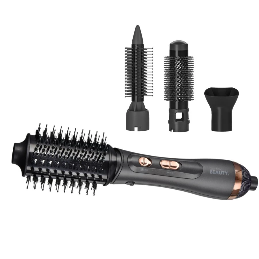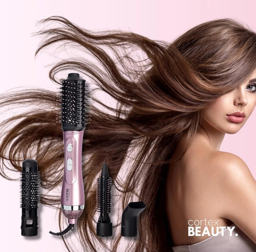 The Cortex Beauty 4-in-1 Air Styler is the ultimate all-purpose styling tool designed to give you salon-quality results at home. With four interchangeable attachments, it combines the power of a blow dryer with the precision of styling brushes, allowing you to dry, smooth, curl, and add volume effortlessly. Whether you want sleek straight hair, bouncy curls, or voluminous waves, this versatile tool makes styling easy and efficient while protecting your hair’s natural shine. Key Features and Benefits: