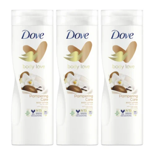 Indulge your skin with the luxurious care of Dove Body Love Pampering Care. Enriched with shea butter and vanilla, this creamy lotion deeply nourishes and pampers your skin, leaving it irresistibly soft, smooth, and beautifully scented. Benefits Provides intense hydration for dry skin. Enriched with shea butter to deeply nourish and repair. Leaves skin feeling soft, smooth, and supple. Infused with vanilla fragrance for a comforting and long-lasting scent. Helps strengthen the skin barrier and maintain moisture. Suitable Areas of Application Specifically designed for the body. Can be used on arms, legs, hands, and any dry skin areas. Not intended for use on the face. How to Use Apply generously all over clean, dry skin. Massage gently in circular motions until fully absorbed. Use daily, preferably after showering or bathing, for best results. Warnings & Precautions For external use only. Avoid contact with eyes; if contact occurs, rinse thoroughly with water. Discontinue use if irritation or rash occurs. Keep out of reach of children. |