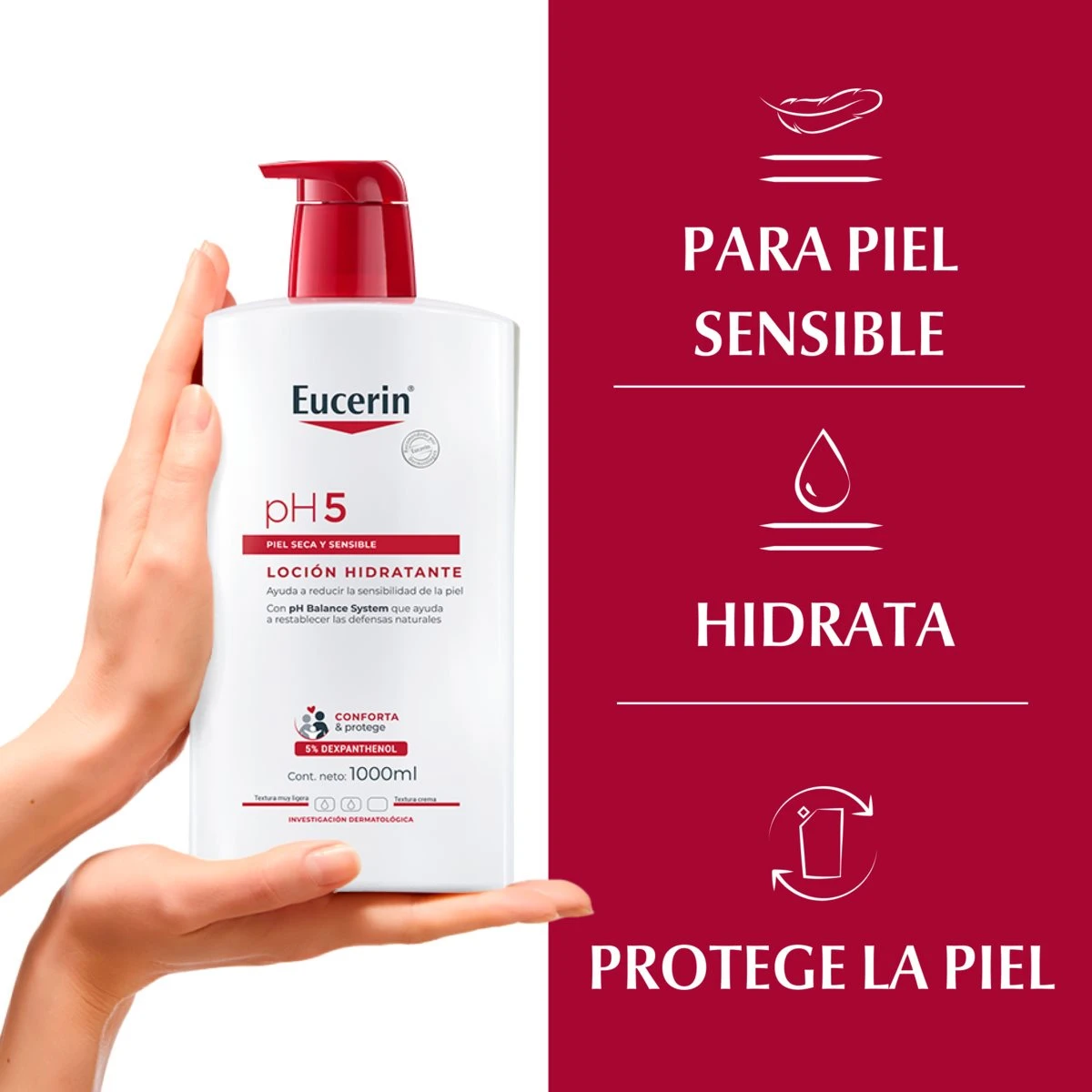 Suitable for: Dry, sensitive, and allergy-prone skin. Suitable for the whole family, including children and babies over 3 months. Ideal for daily use on skin that is easily irritated or affected by environmental stressors. Eucerin pH5 Hydrating Lotion is a gentle yet effective body moisturizer specifically designed to restore long-lasting hydration while strengthening the skin’s natural defenses. Formulated with the unique pH5 Enzyme Protection and Dexpanthenol, this lotion helps maintain the skin's optimal pH balance, improving resilience and softness even in sensitive skin. It provides immediate comfort and long-term protection against dryness. Benefits: Provides 24-hour moisture and comfort Strengthens the skin's natural barrier function Helps maintain the skin’s ideal pH level Enhances skin resilience against dryness and irritation Quickly absorbs without leaving a greasy or sticky residue Suitable for daily use on large areas of the body Fragrance-free, colorant-free, and dermatologically tested on sensitive skin Suitable for Use On: Body (arms, legs, hands, etc.). Not intended for use on the face. Safe for sensitive areas of the body but avoid application on open wounds or mucous membranes. How to Use: Apply daily (or more frequently if needed) to clean, dry skin. Massage gently until fully absorbed. Best used after bathing or showering to lock in moisture. Usage Warnings: For external use only Avoid contact with eyes; rinse thoroughly with water if contact occurs Do not apply to broken or irritated skin without medical advice Discontinue use if irritation, rash, or discomfort appears Keep out of reach of children Store in a cool, dry place, away from direct sunlight |