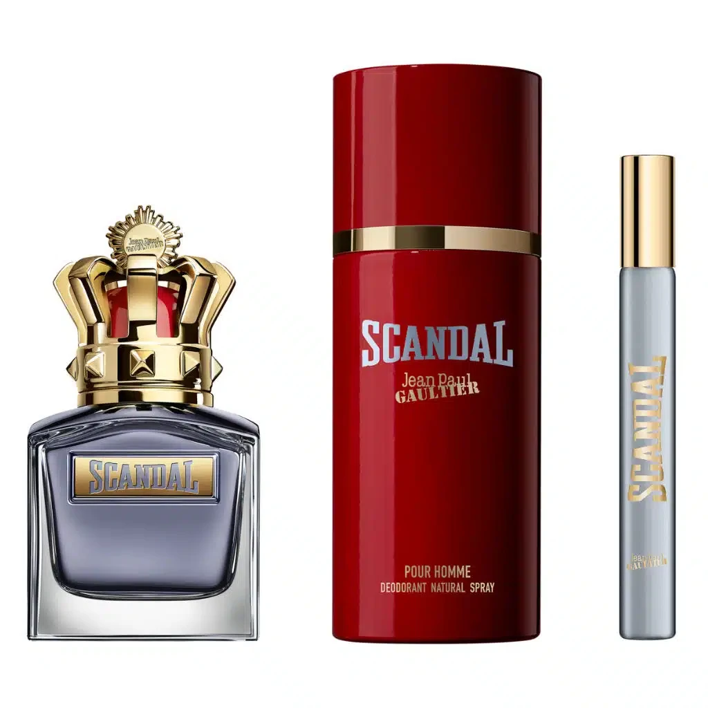 Celebrate the holidays in bold style with the Scandal Pour Homme Gift Set by Jean Paul Gaultier – a fragrance set that exudes charisma, strength, and luxury. This festive edition includes the iconic crowned bottle of Scandal Eau de Toilette, a matching deodorant spray, and a convenient travel-size spray – all housed in a winter-inspired collector’s box with radiant gold and red detailing. Set Includes: