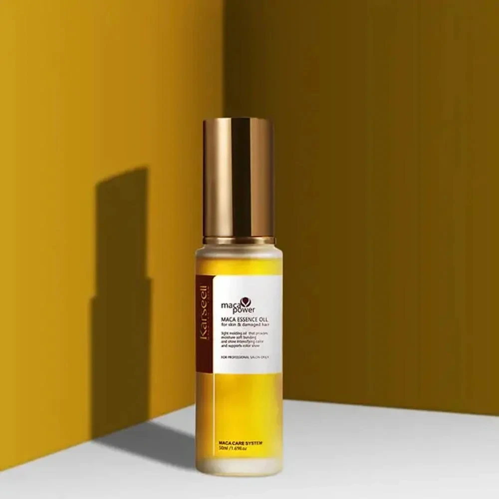 Suitable For All Hair TypesDesigned especially for damaged, dry, chemically-treated, or heat-styled hair, this fast-absorbing oil also suits all hair types, aiming to restore shine, elasticity, and manageability . “Karseell Maca Oil is a luxurious, nutrient-rich elixir fortified with Moroccan argan, shea, and avocado oils. It penetrates deeply to nourish and repair hair fibers, tame frizz, protect from up to 230 °C heat, and deliver instant shine and silky smoothness—without weighing hair down.” Key Benefits