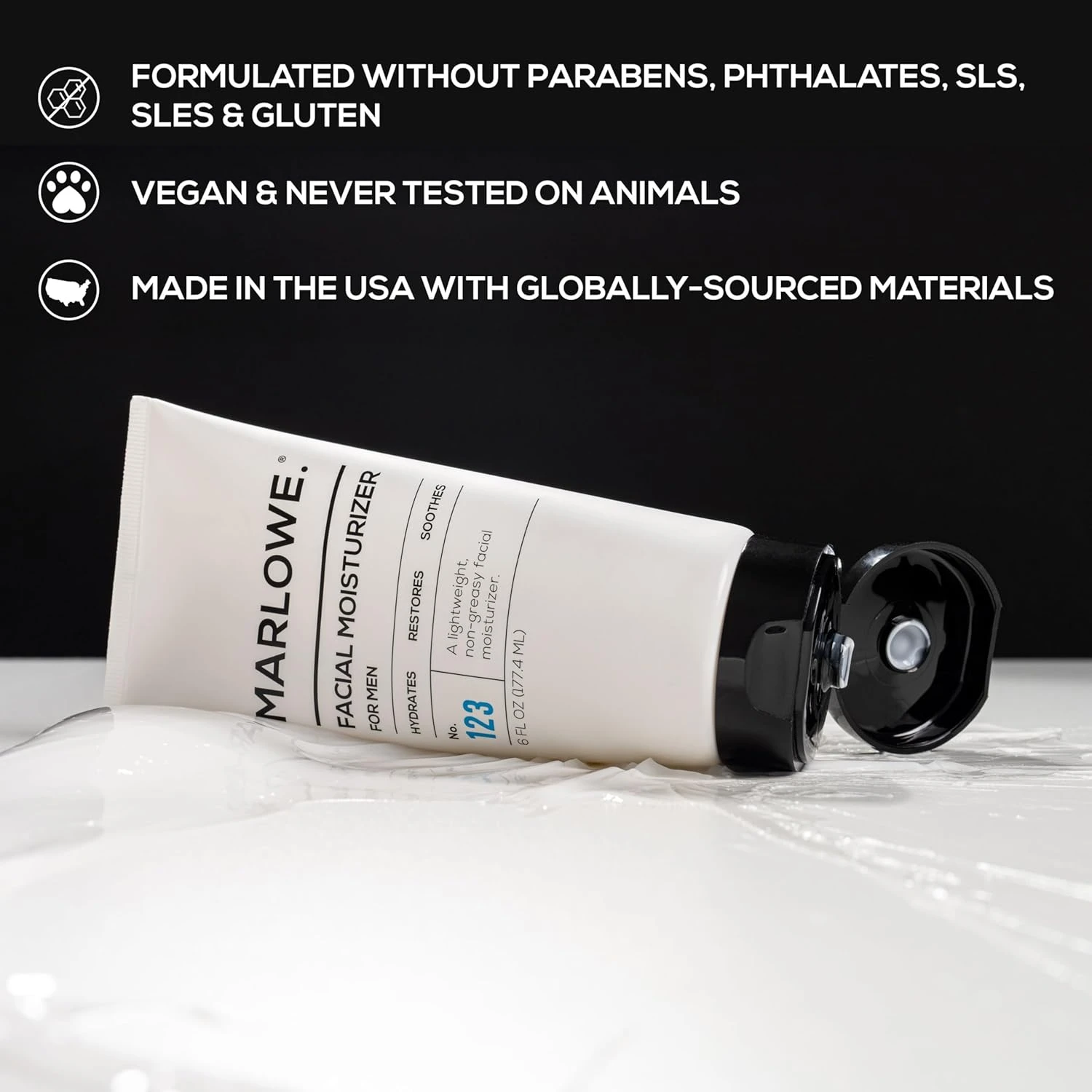 Suitable for: All skin types (dry, normal, oily) A lightweight, non-greasy daily moisturizer crafted with aloe, green tea, willow bark, and passionflower to strengthen the skin barrier, hydrate deeply, and deliver a fresh, masculine scent. Benefits: