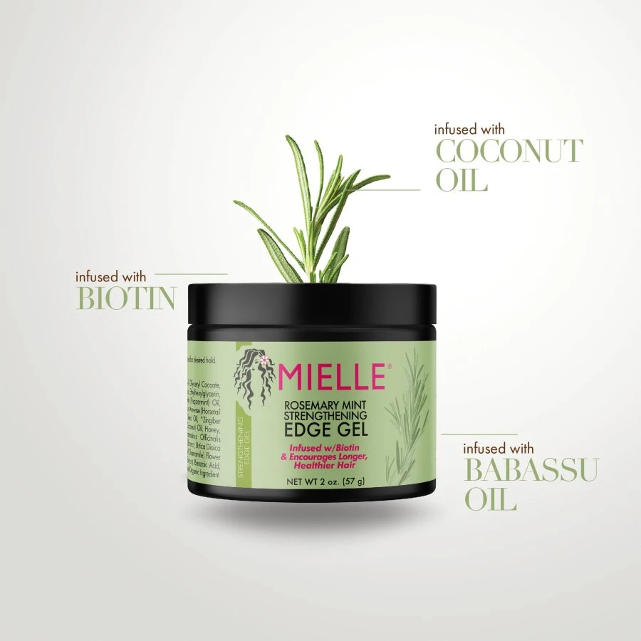 Achieve smooth, sleek edges while nourishing your hairline with the Mielle Rosemary Mint Strengthening Edge Gel. Enriched with biotin, rosemary, and peppermint oils, this lightweight gel helps support strong, healthy hair while delivering flexible hold and a beautiful, natural shine. Designed especially for delicate edges, it tames flyaways and adds a refreshing herbal scent without leaving residue or flaking. Key Benefits: