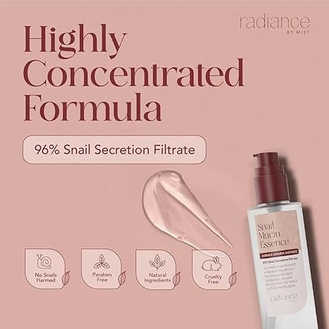 Experience visibly renewed and radiant skin with Radiance Snail Mucin Essence by MIST. Formulated with 96% pure snail secretion filtrate, this lightweight essence deeply hydrates, repairs, and restores your skin's natural glow. It absorbs quickly without leaving a sticky residue, leaving your skin smooth, soft, and luminous. Key Benefits: