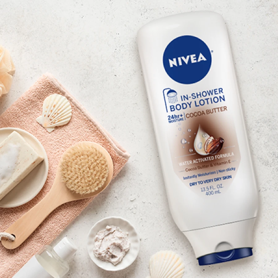 Suitable for: All skin types, especially dry to very dry skin. NIVEA Cocoa Butter In-Shower Body Lotion is a convenient, water-activated moisturizer that provides deep nourishment while you're still in the shower. Enriched with cocoa butter and NIVEA’s Deep Moisture Serum, this innovative formula leaves your skin feeling soft, hydrated, and smooth — with no sticky feeling. It locks in moisture right after cleansing, so you can skip the extra step of applying body lotion after towel-drying. Benefits: Intensely moisturizes and nourishes dry skin Infused with cocoa butter for a naturally smooth glow Convenient in-shower use. no need to apply lotion after drying Leaves skin soft and radiant without greasiness Dermatologically tested for skin compatibility Areas of Use: Designed for use on the body, including arms, legs, and torso. Not intended for use on the face. How to Use: Use your regular body wash and rinse off. Apply NIVEA In-Shower Body Lotion on wet skin while still in the shower. Rinse off thoroughly. Towel dry and get dressed as usual . no additional moisturizer needed. Warnings: For external use only. May cause slippery surfaces. use caution in the shower. Avoid contact with eyes. Do not apply to irritated or broken skin. Discontinue use if irritation occurs. Keep out of reach of children. |