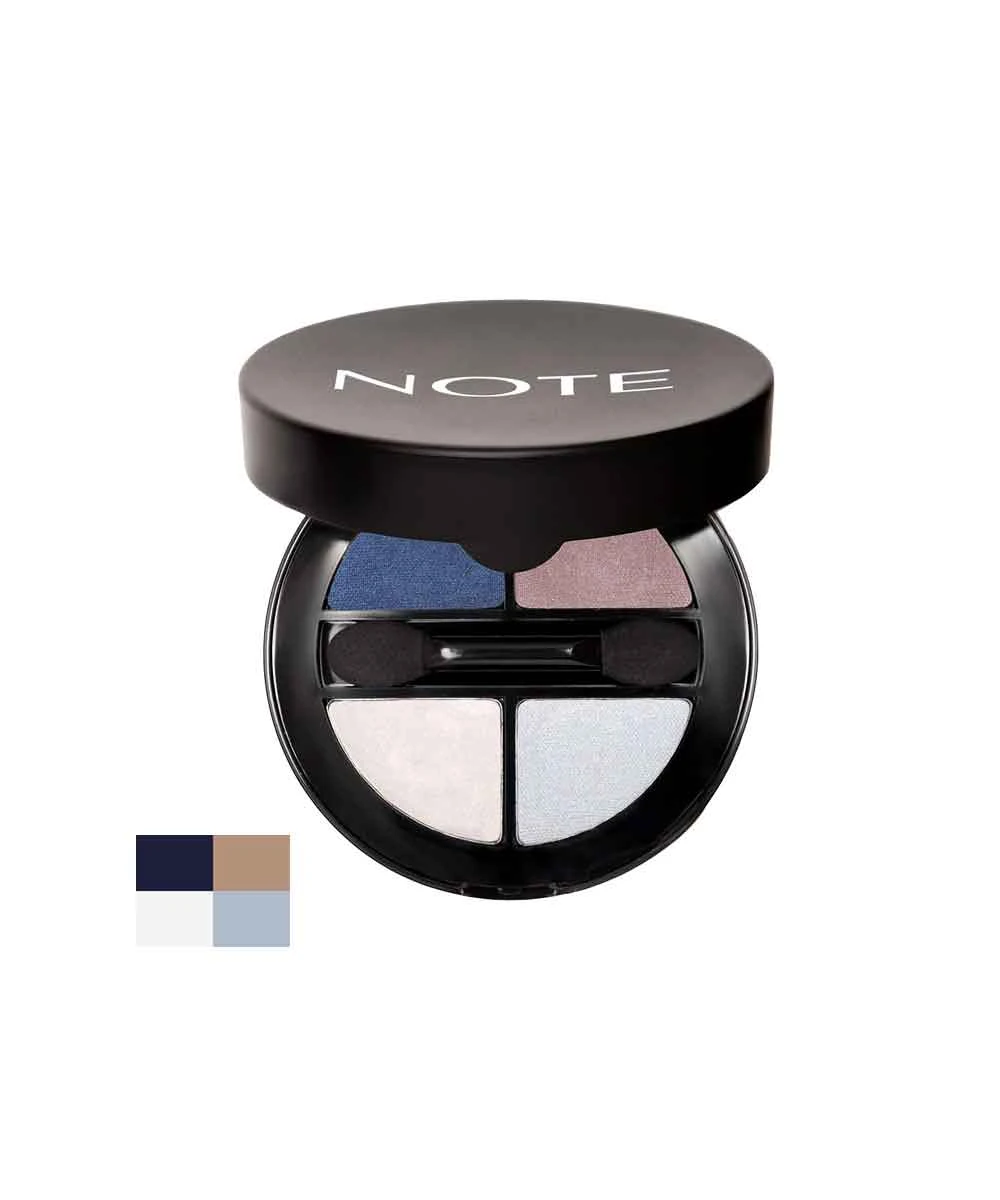 Suitable ForAll skin types — including oily, dry, combination, and sensitive skin. Dermatologically tested, paraben-free, cruelty-free, and infused with Vitamin E for eyelid careDiscover luminous, buildable color with NOTE Luminous Silk Quattro Eyeshadow. This luxe four-shade satin-powder palette glides on effortlessly, blending seamlessly to create versatile day‑to‑night looks. The stay-proof texture resists smudging, while Vitamin E nourishes delicate skin. Benefits4 complementary shades per palette create cohesive, polished eyeshadow looks Satin, smooth powder texture—blendable, weightless, and low fall‑out . Stay‑proof, crease‑resistant finish keeps eyeshadow looking fresh all day . Enriched with Vitamin E, providing antioxidant protection and gentle care for eyelids . Ethically formulated: paraben-free, cruelty-free, vegan, safe for sensitive eyes and contact lenses. Area of ApplicationDesigned for eyes only: ideal for eyelids, creases, brow bones, and lash lines. Not intended for facial, lip, or body use. How to UsePrime lids for smoother base and enhanced longevity. Apply the lightest shade all over eyelid as a foundation. Layer mid-tone shades in the crease for depth and definition. Use the darkest color at outer V or lash line for intensity. Blend meticulously to create a flawless gradient. Optional tip: For dramatic intensity, apply shades wet or to lower lash line . WarningsFor external use only; avoid direct eye contact. Patch-test prior to full use if you have sensitive skin. Discontinue use if irritation occurs. Close palette securely, store in a cool, dry place. Remove makeup thoroughly at the end of the day. Use within 24 months of opening to maintain performance |