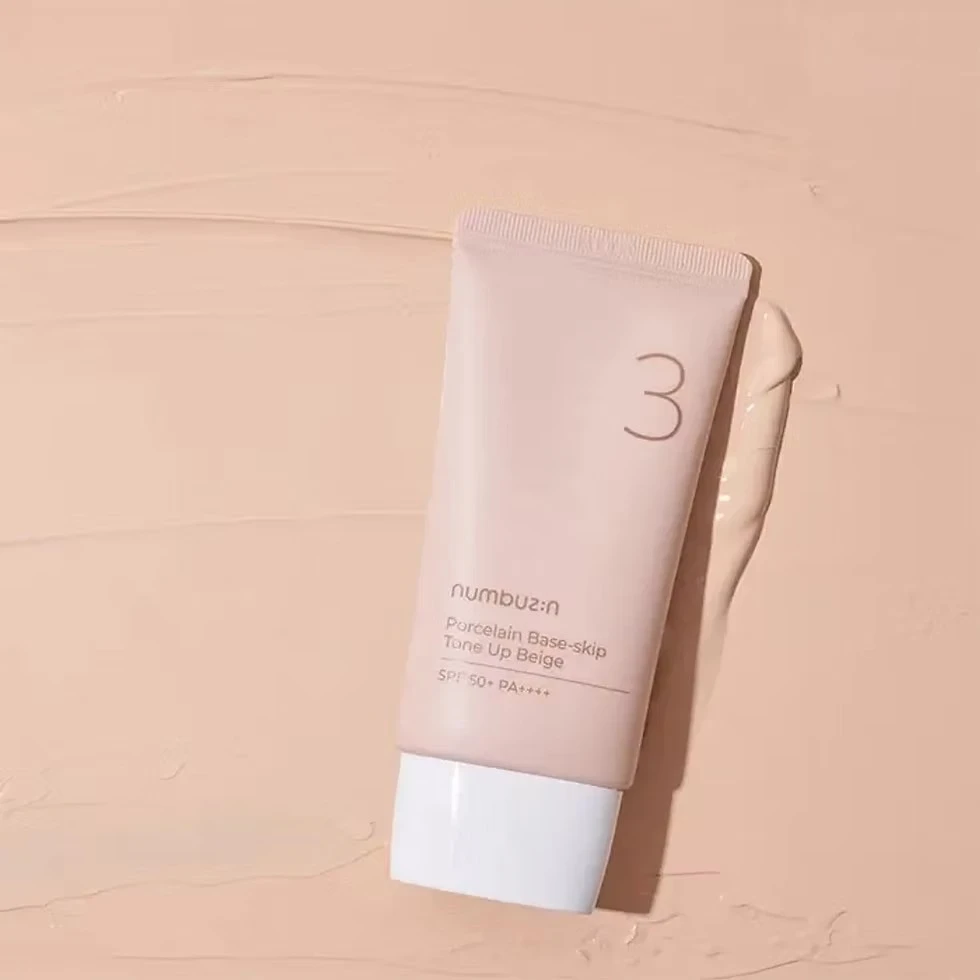 numbuzin’s No.3 Porcelain Base-Skip Tone Up Beige is a multitasking sunscreen and tone-up base that delivers high sun protection (SPF 50+ PA++++), brightening, and skin-smoothing benefits. Enriched with Centella Asiatica Extract and Niacinamide, it soothes, evens out skin tone, and provides a radiant porcelain finish without the need for foundation. Its lightweight texture blends seamlessly, leaving skin looking naturally flawless, hydrated, and protected all day. Benefits