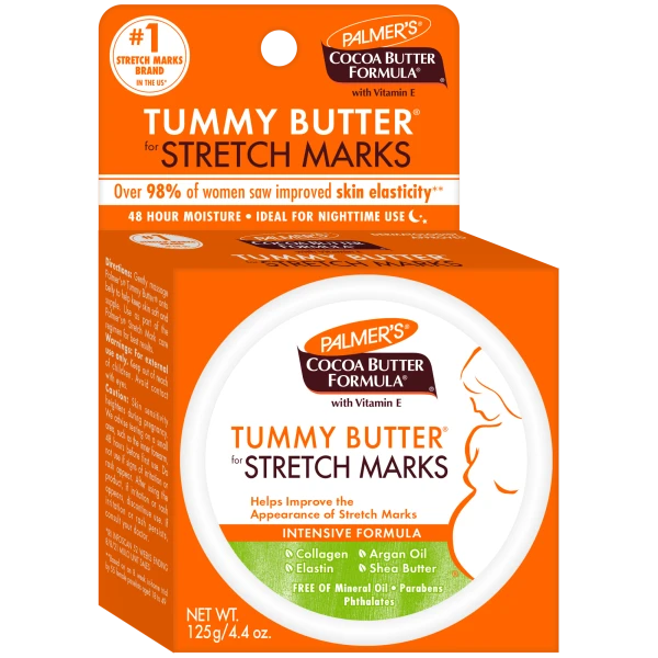 Nourish your skin and reduce the appearance of stretch marks with the Palmer’s Tummy Butter for Stretch Marks, enriched with Vitamin E, Collagen, Elastin, and Argan Oil. This rich, intensive nighttime treatment delivers deep moisture and enhances skin elasticity, helping your skin stay smooth and resilient — especially during pregnancy and weight changes. Key Benefits: