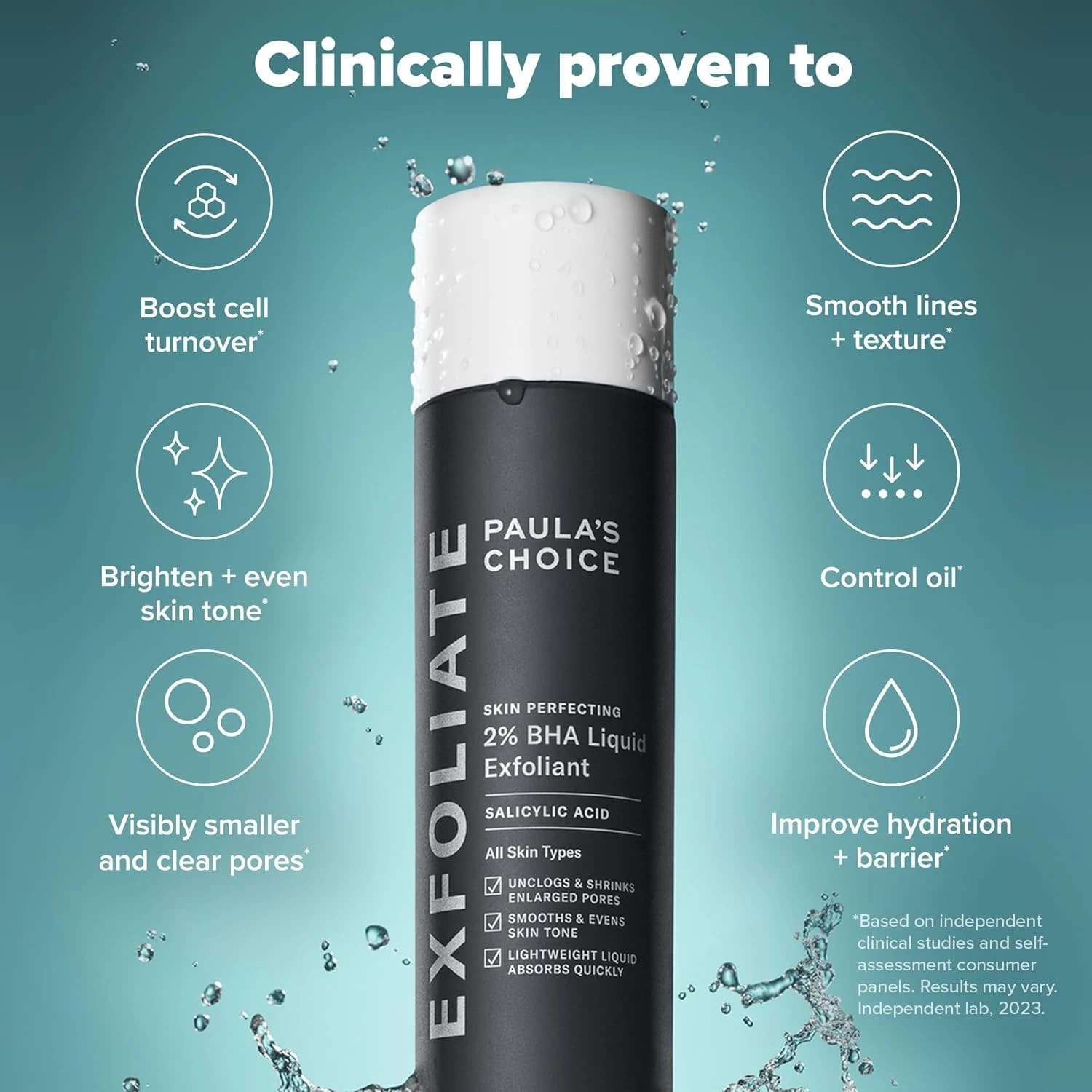 Suitable for: All skin types. excellent for oily, acne-prone, and combination skin. A leave-on salicylic acid exfoliant that penetrates pores to clear and smooth skin without scrubbing. Benefits: