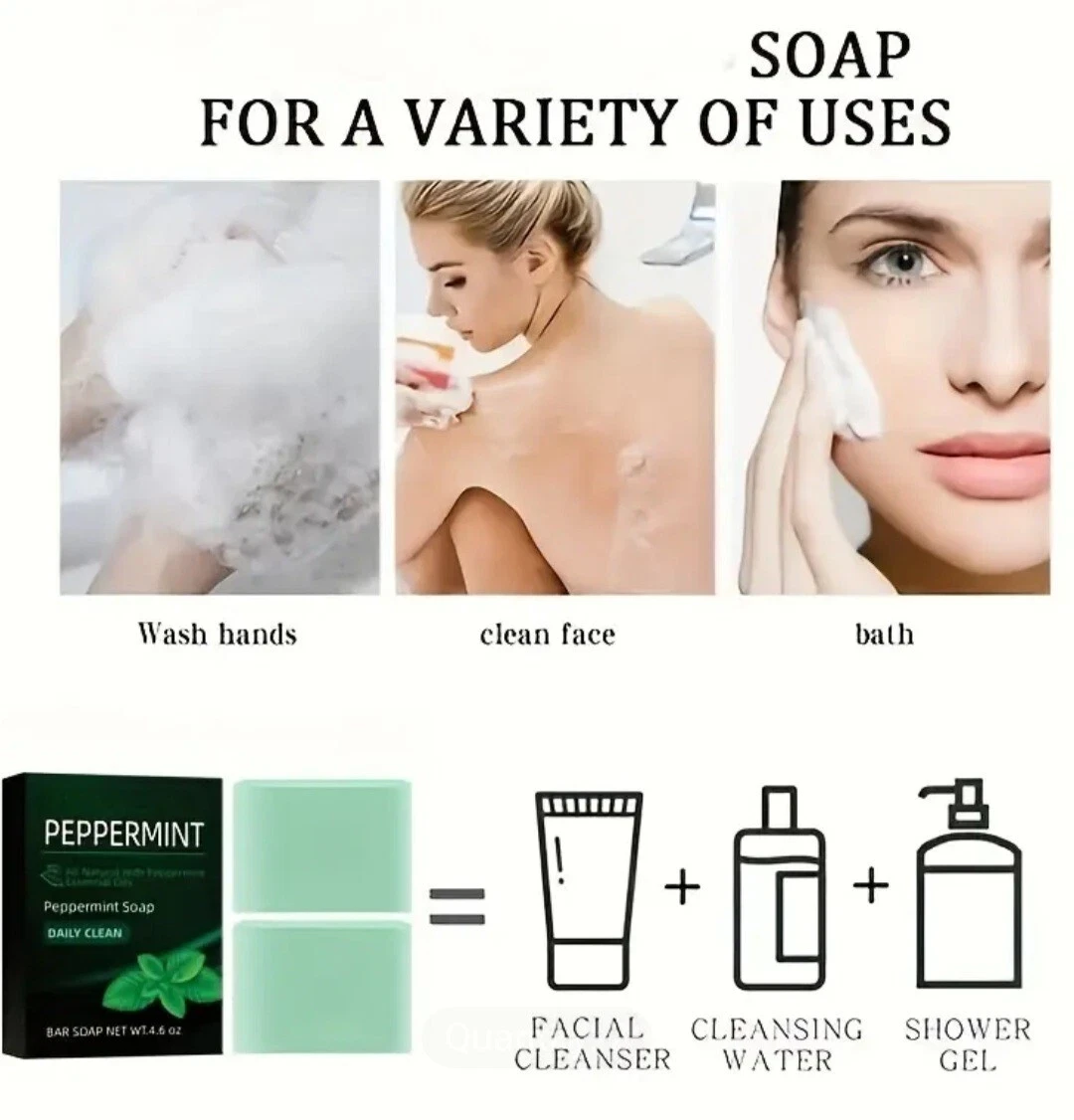 : A refreshing soap bar enriched with natural peppermint for a cooling, revitalizing, and deeply cleansing experience. Perfect for daily use to leave your skin feeling fresh and energized. Benefits: Provides deep cleansing for face and body. Refreshes and cools the skin with natural peppermint. Helps remove excess oil and impurities. Can be used for shaving, leaving skin smooth and soft. Peppermint Soap – 100% Pure & Natural Face & Body Bar Suitable for all skin types Suitable Areas: Face, body, and shaving use. How to Use: Apply to wet skin, lather gently on face and body, then rinse thoroughly with water. Can also be used as a shaving bar. Warnings: For external use only. Avoid contact with eyes. If contact occurs, rinse thoroughly with water. Keep out of reach of children. Discontinue use if irritation occurs |