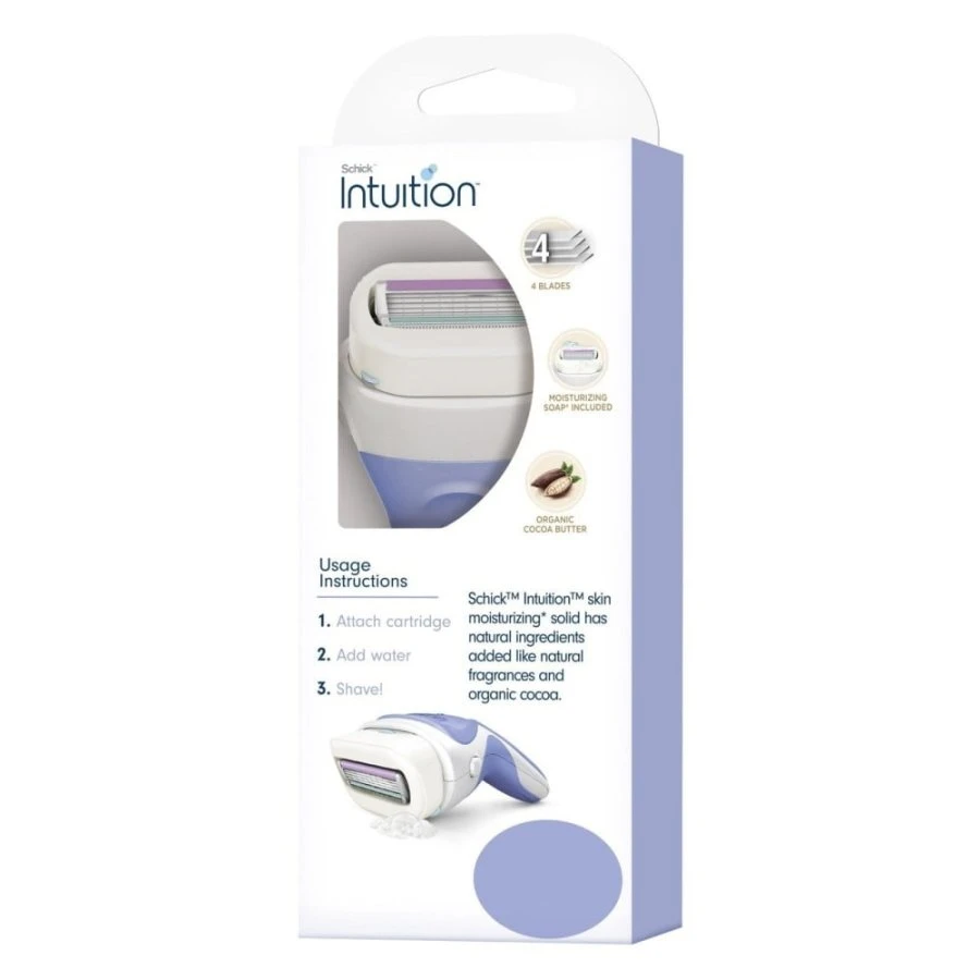 Product Overview:The Schick Intuition® razor simplifies your shaving routine by combining a razor and moisturizing solid in one. No need for shaving cream — just add water! Enriched with organic cocoa butter and natural fragrances, it leaves your skin feeling smooth and nourished with every shave. Key Features: