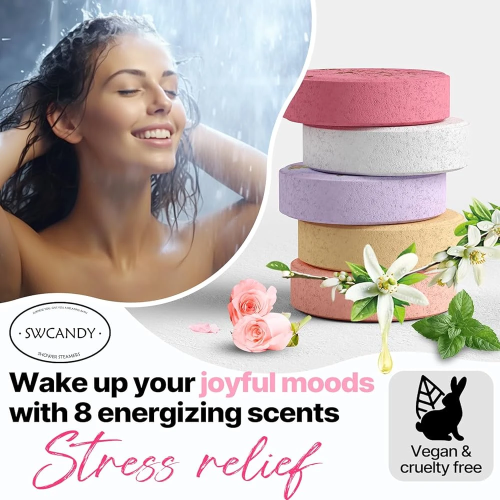Suitable for All Skin TypesThe shower steamers are designed for all skin types, as they are used externally in the shower environment without direct contact with sensitive areas of the skin. Transform your daily routine into a spa-like retreat with the Shower Steamers & Scented Candles Gift Set. Infused with refreshing fragrances and crafted to deliver a calming atmosphere, this set elevates your shower into a relaxing, sensory escape. Whether you’re winding down after a long day or creating a soothing environment, this set is the perfect companion for relaxation and stress relief. Benefits