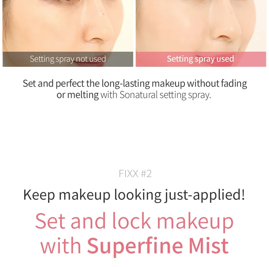 The So Natural All Day Tight Make Up Setting FIXX is a cult-favorite Korean setting spray that locks your makeup in place for hours. With its ultra-fine mist, it delivers a refreshing veil that keeps your look flawless, shine-free, and smudge-resistant all day long. Lightweight yet powerful, it prevents makeup from melting, transferring, or fading—perfect for long days or special events. Benefits