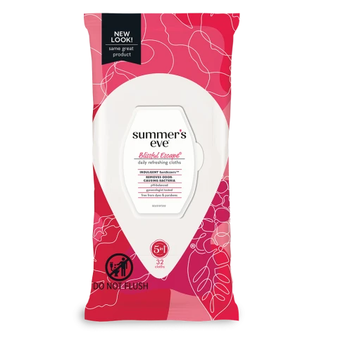 Stay fresh anytime, anywhere with Summer’s Eve Blissful Escape Daily Refreshing Cloths. Infused with indulgent SafeScents™, these ultra-soft wipes are designed to remove odor-causing bacteria while maintaining your body’s natural balance. Perfect for on-the-go moments, they provide instant freshness and confidence with a clean, light scent. Benefits