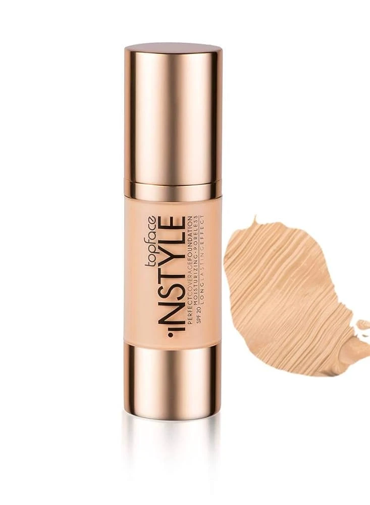 Suitable for All Skin TypesThis foundation is formulated to be suitable for all skin types, including oily, dry, combination, sensitive, and acne-prone skin. Palmaria palmata extract helps refresh and reduce signs of tired-looking skin Transform your complexion with Topface Instyle Perfect Coverage Foundation—a lightweight yet full-coverage formula that blends makeup, primer, and sunscreen in one. It glides on smoothly to even out skin, conceal imperfections, and leave a natural, radiant finish—it’s like Photoshop in a bottle. Key BenefitsProvides full, buildable coverage to conceal blemishes, spots, and uneven tone Moisturizing and long-wearing formula that retains skin hydration throughout the day Powers refresh skin with Palmaria palmata extract, reducing fatigue signs Contains SPF 20 for daily UV protection Mineral-rich formula supports skin hydration and balance Dermatologically tested and suitable for sensitive skin Suitable Application AreaIdeal for full-face application: cheeks, forehead, nose, chin, and jawline Not intended for lips or eyelids How to UseShake bottle gently before use. Apply small amounts by dotting onto the forehead, cheeks, nose, and chin. Blend outward using fingertips, a brush, or sponge. For extra coverage, layer thinly rather than applying all at once. Set with powder if desired for extra longevity and shine control Warnings & PrecautionsFor external use only Avoid direct contact with eyes Discontinue use if irritation, redness, or rash occurs Patch test recommended for very sensitive or reactive skin Store in a cool, dry place with cap tightly closed Keep out of reach of children |