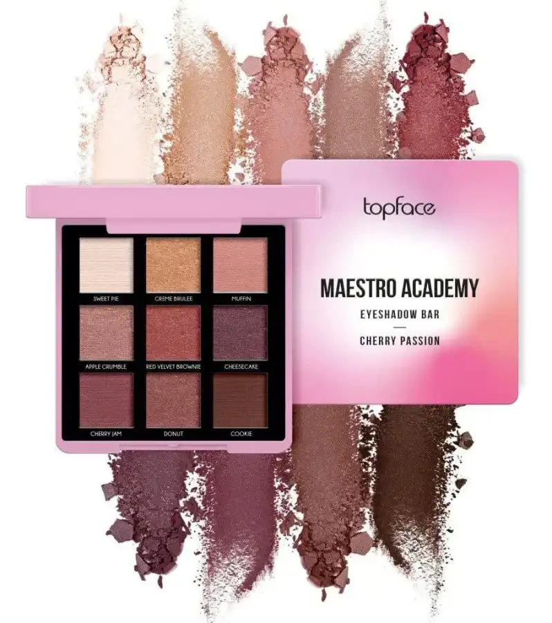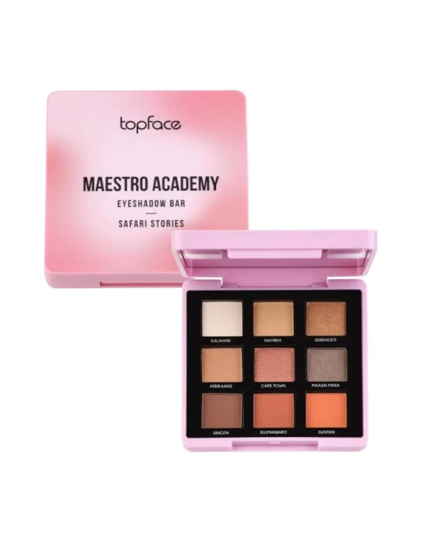 Suitable ForAll skin types—including normal, dry, combination, oily, and sensitive. Enriched with squalane, the silky formula helps maintain eyelid hydration. Dermatologically tested for comfort. Topface Maestro Academy Eyeshadow Bar offers nine finely curated shades in one sleek palette. From soft mattes to radiant shimmers, this all-in-one eyeshadow bar blends effortlessly to create day-to-night eye looks. Infused with moisturizing squalane to protect and smooth the delicate eyelid area, it delivers long-lasting, crease-resistant color payoff. BenefitsNine versatile shades: mix of mattes, satins, and shimmers for endless looks. Squalane-infused: deeply hydrates eyelids and supports skin balance. High pigmentation & smooth blending: creamy powder that blends seamlessly with no fallout. Long-wear and crease-resistant: stays bright and elegant through the day. Compact and travel-friendly: includes a mirror and is conveniently sized. Ideal ForEyes only: perfect for eyelid washes, crease definition, brow bone highlight, and inner-corner pop. Not designed for face/highlight or lip areas. How to UsePrime lids before application. Apply matte shades in crease or as base. Sweep shimmer shades on lid or inner corners for glow. Blend edges with a fluffy brush for seamless transition. Layer or intensify with shimmer shades dry or damp for bold effect Usage WarningsContains mineral pigments including mica and talc—patch-test if sensitive. Avoid direct contact with eyes; rinse immediately if irritation occurs. Keep palette closed and dry; remove makeup before sleep. |