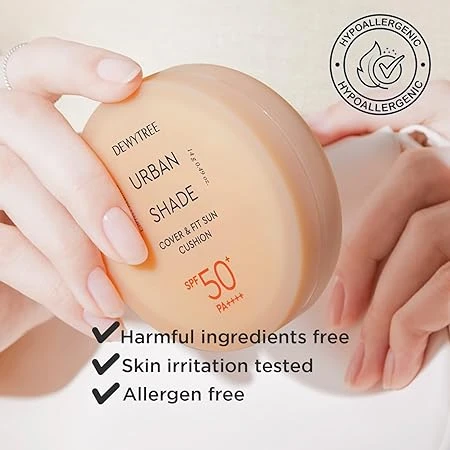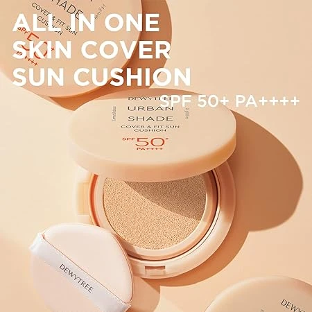 Suitable for All Skin TypesThis sun cushion is suitable for all skin types, including normal, oily, dry, and combination skin. It is especially convenient for sensitive skin as it provides both sun protection and coverage. Dewytree Urban Shade Cover & Fit Sun Cushion SPF 50+ PA++++ is a multifunctional sun cushion that combines high UV protection with natural coverage. With its lightweight formula, it helps to even out skin tone, cover imperfections, and provide long-lasting hydration. Perfect for on-the-go use, it delivers a flawless finish while protecting against harmful UVA/UVB rays and environmental stressors. Benefits